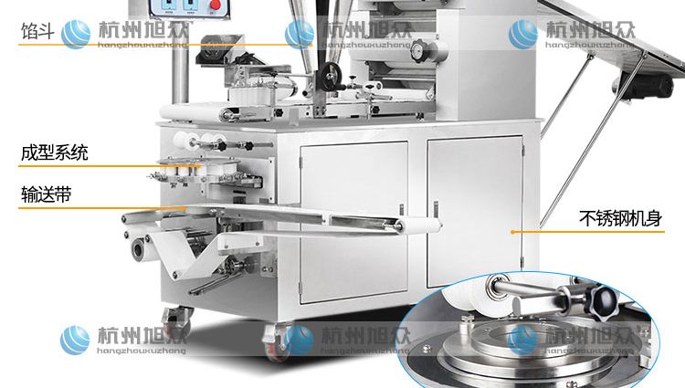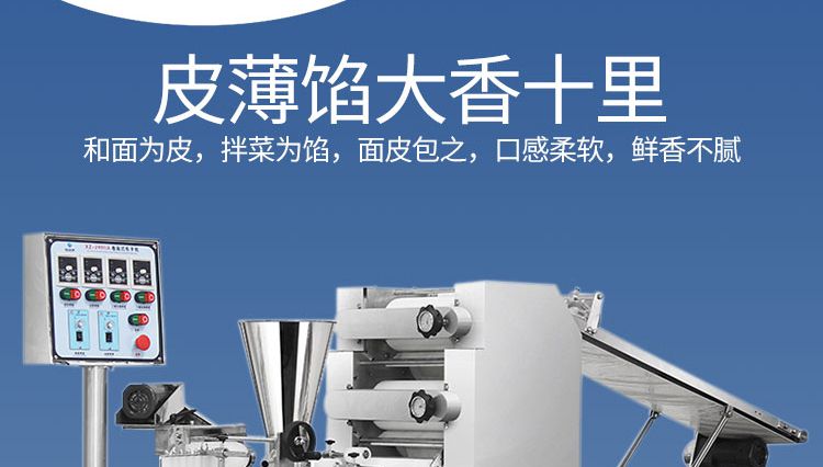 ◆壓面、成型、出餡一體化,操作簡單方便,生產(chǎn)效率高,占地面積小。