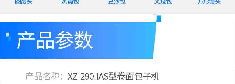 名稱XZ-290IIAS卷面式包子饅頭機(jī) 電源220/380V 功率2.5kw 產(chǎn)量0-3600個(gè)/h 尺寸3280×1500×1420mm 重量480KG 規(guī)格 其他