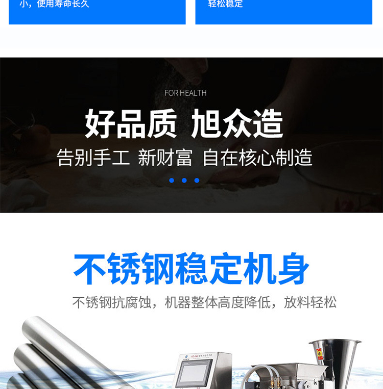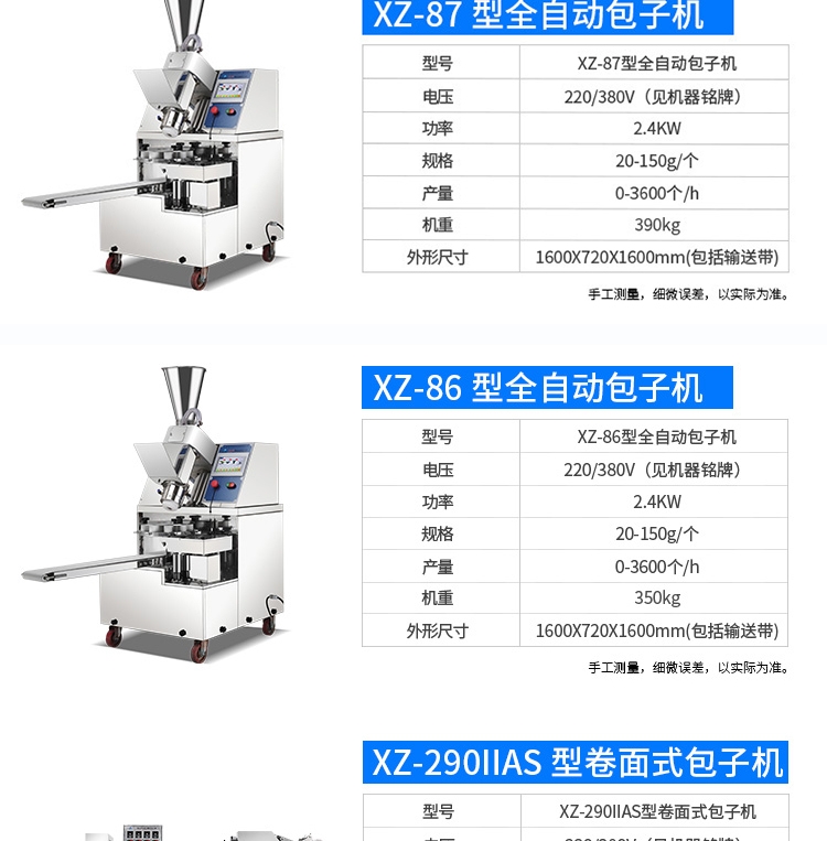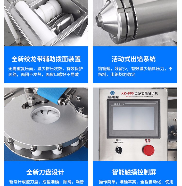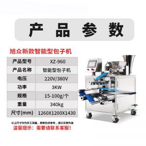 XZ-960多功能包子機(jī)采用新設(shè)計(jì)出面系統(tǒng),帶有輔助撥面裝置投面后無需重復(fù)使用手壓面/推面,有效提高工作效率/預(yù)防安全隱患;絞龍采用新概念,減少擠壓次數(shù),有效保護(hù)面筋、面團(tuán)不發(fā)熱,保證面皮的口感;做湯包時(shí),皮可更薄,面皮里外更光滑(可當(dāng)氣球吹大)有效保護(hù)餡料里面的湯汁不會(huì)漏出或被吸收;出面斗帶有自動(dòng)恒溫制冷系統(tǒng)最低溫度可達(dá)2℃ ,冷媒:R134A(特殊要求可按要求定制)(若定制,貨期增加20天工作日);操作簡(jiǎn)單易懂,拆裝簡(jiǎn)單,清洗方便;適合產(chǎn)品范圍:湯包,小龍包,速凍包,生煎包,發(fā)面包子,各類餡料包子等產(chǎn)品