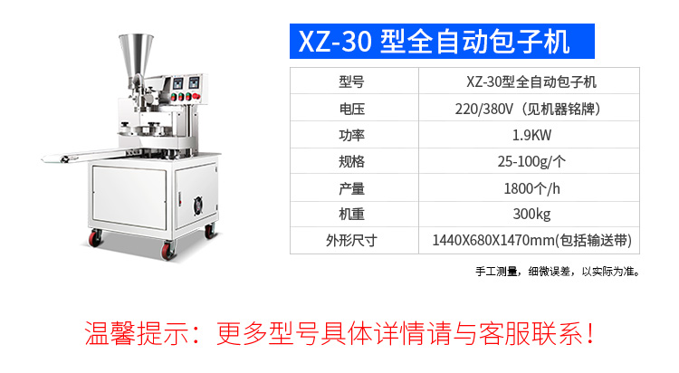 旭眾牌XZ-915全自動(dòng)包子機(jī)體積小重量輕,外殼及接觸食品部分均由不銹鋼制造,外觀精美耐用;采用三變頻無極變速調(diào)控,生產(chǎn)性能穩(wěn)定。設(shè)計(jì)先進(jìn),結(jié)構(gòu)簡(jiǎn)單,操作方便。包子機(jī)三大特色: