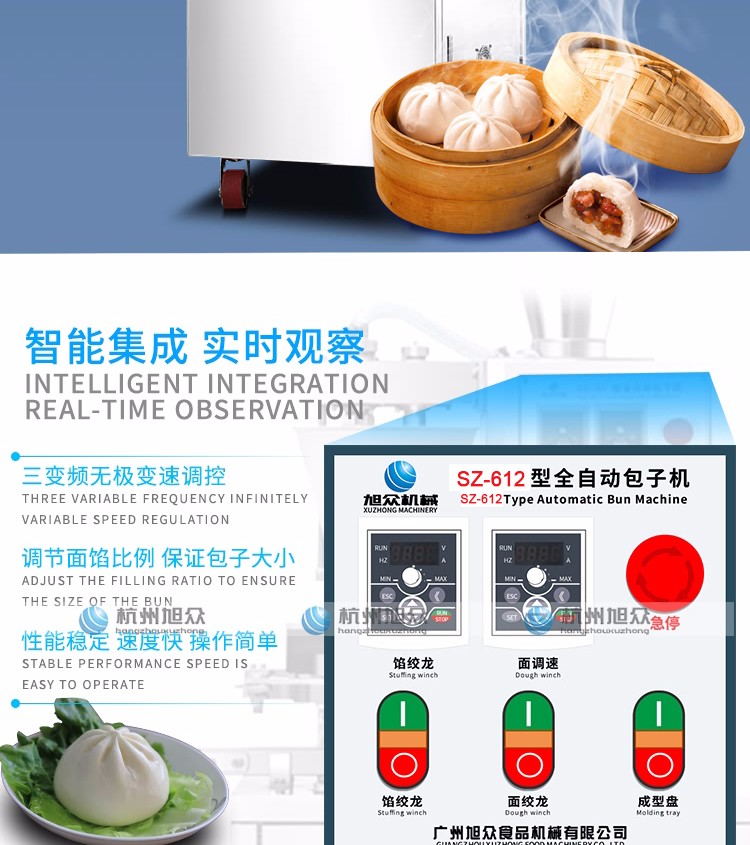 SZ-612全自動(dòng)包子機(jī),22800元(不含運(yùn)費(fèi)不含稅價(jià)格),SZ-612型全自動(dòng)包子機(jī)是一款設(shè)計(jì)先進(jìn),結(jié)構(gòu)簡單,操作方便,生產(chǎn)性能穩(wěn)定的設(shè)備。其體積小重量輕,外殼主要部件采用不銹鋼制作,外觀精美。