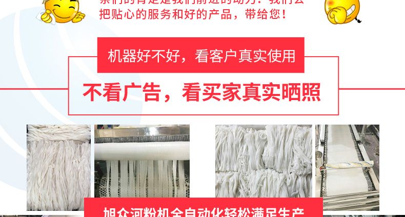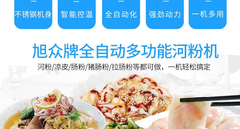 本公司推出的高效節(jié)能河粉機技術(shù)先進、品質(zhì)領先。該河粉機既傳承民間的河粉制作工藝,使之保留并超越原有風味,又引進先進的食品加工技術(shù),大大提升了生產(chǎn)效益。廣大客戶使用高效節(jié)能河粉機后一直贊譽:該機是河粉機中的科技典范,旭眾憑借其品質(zhì)與優(yōu)良服務,是用戶的優(yōu)選選擇。該機一機多用,可根據(jù)需求定制河粉、涼皮、拉腸粉、豬腸粉等功能。