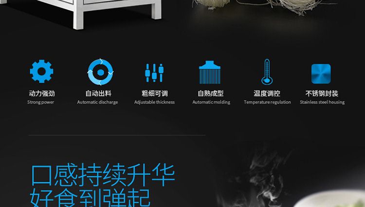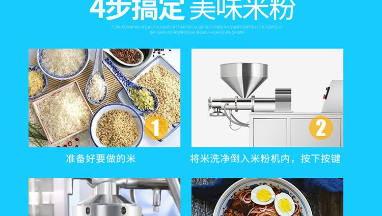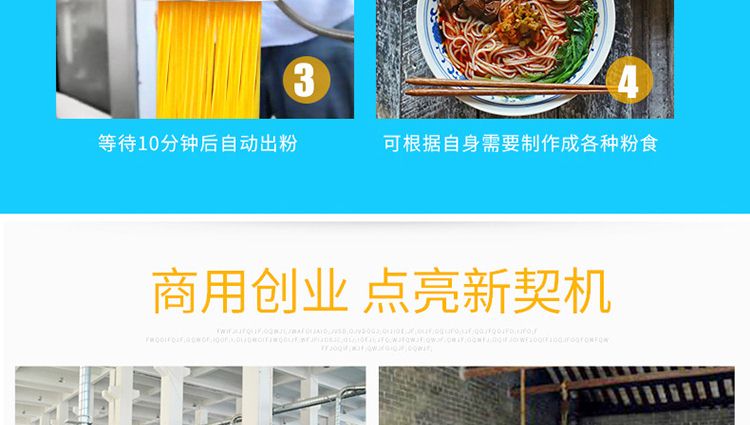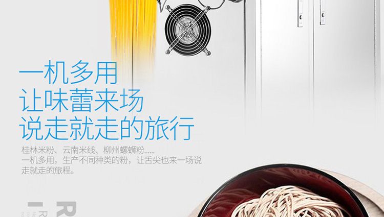 名稱一步成型米粉機 電源220/380V 功率4kw 產(chǎn)量20kg/h 尺寸990×430×1240mm 重量150kg 規(guī)格0.8~20mm 其他