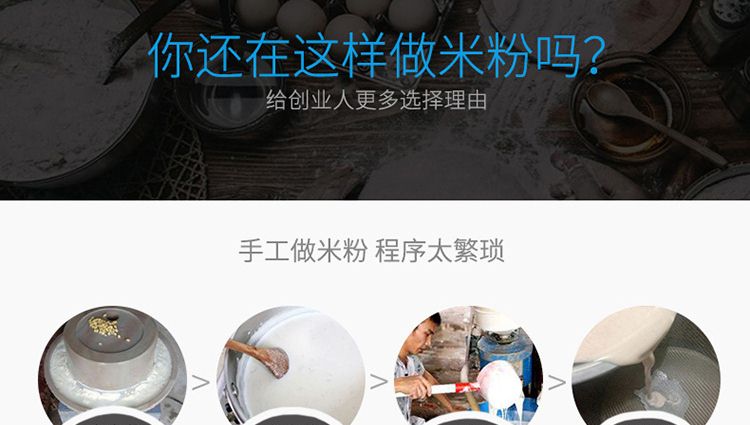 ◆產(chǎn)品多樣化,包括各種圓形扁形的蔬菜型、雜糧型、功能型米粉、年糕、糍粑、餅類、豆?jié){等解決了產(chǎn)品單一問題。