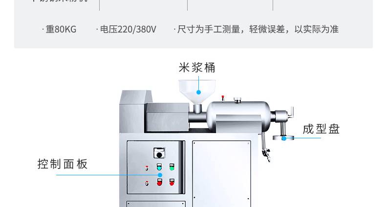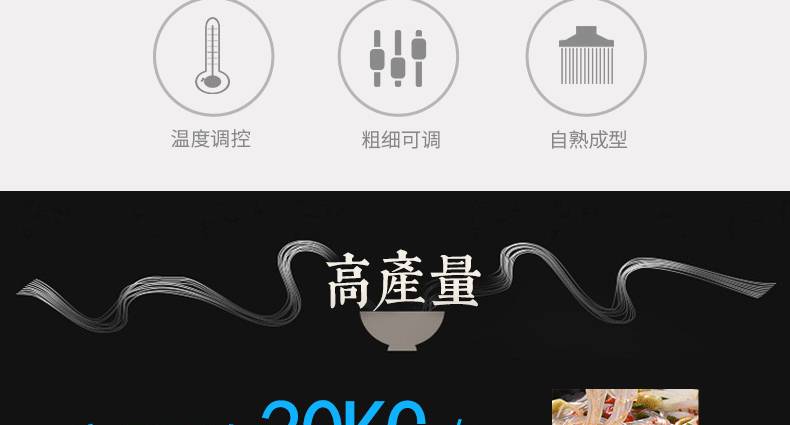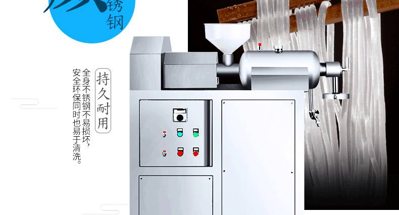 改進(jìn)型不銹鋼米粉、米線專用機(jī),裝有自動(dòng)溫空裝置,整個(gè)生產(chǎn)過程設(shè)備均在恒溫狀態(tài)下運(yùn)行,自動(dòng)化程度高,操作簡單,l人即可生產(chǎn)??缮a(chǎn)米粉、米線、桂林米粉、過橋米線、年糕、糍粑等產(chǎn)品。各種形狀都可生產(chǎn)(圓、扁),加工食品外表光滑,厚薄、寬窄、粗細(xì)均勻可調(diào),筋軟適度,有彈性,口感柔軟、味道純正。