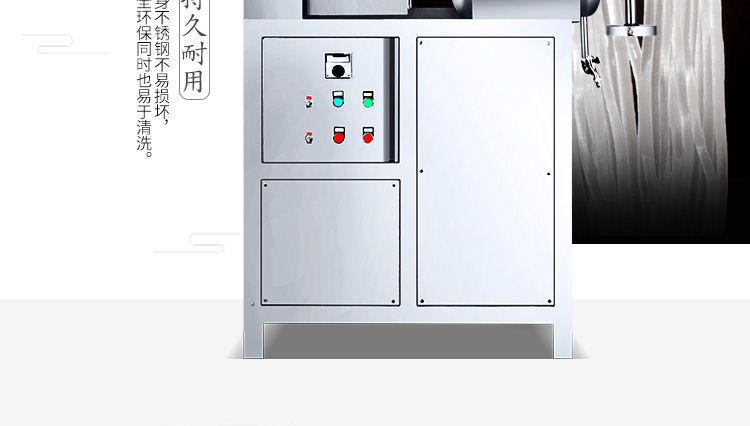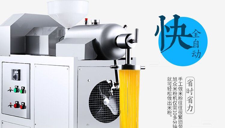 改進型米粉、米線專用機,裝有自動溫空裝置,整個生產(chǎn)過程設(shè)備均在恒溫狀態(tài)下運行,自動化程度高,操作簡單,l人即可生產(chǎn)??缮a(chǎn)米粉、米線、桂林米粉、過橋米線、年糕等產(chǎn)品。各種形狀都可生產(chǎn)(圓、扁),加工食品外表光滑,厚薄、寬窄、粗細均勻可調(diào),筋軟適度,有彈性,口感柔軟、味道純正。