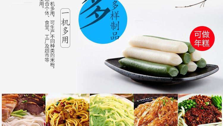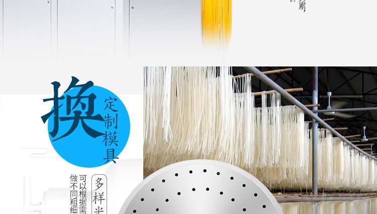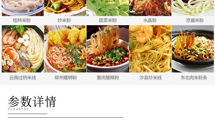 ◆ 米粉機生產(chǎn)多樣性可生產(chǎn)米粉、米線、粉絲、粉條、年糕、玉米面條、各種雜糧粉絲、各種面條、雜糧面條、彩色面條以及以紅薯、玉米、大豆、蠶豆等制成淀粉為原料的等多種食品而且每種食品厚薄、粗細等規(guī)格可根據(jù)需要任意調(diào)整。