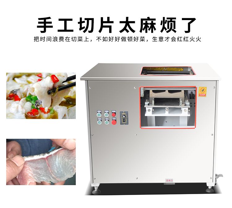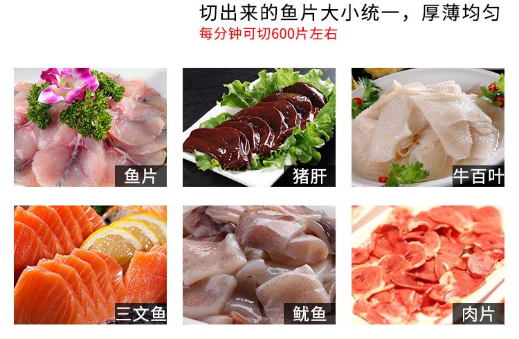 本機(jī)外形美觀、操作簡單、效率高、耗電小、清潔保養(yǎng)容易、安全衛(wèi)生、切肉效果好等優(yōu)點(diǎn),切鮮魚機(jī)器其造型美觀、結(jié)構(gòu)緊湊、堅(jiān)固耐用,切魚片機(jī)器價(jià)格實(shí)惠是賓館、酒家、食堂、肉類加工場等單位所不可缺少的肉類加工機(jī)械
