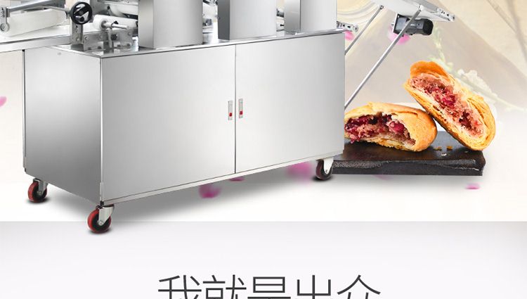 名稱XZ-15C三道搟面酥餅機 電源220/380V(見機器名牌) 功率3kw 產(chǎn)量0-5000個/小時 尺寸3300*725*1520mm,成型機尺寸1550*800*820mm,出餡機尺寸870*4 重量410+110+170kg 規(guī)格10-150克/個 其他