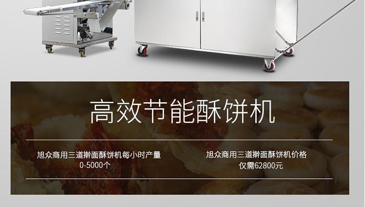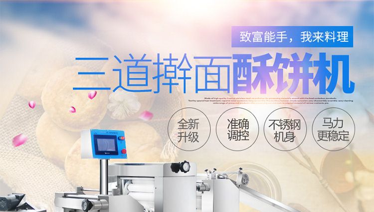 旭眾牌XZ-15C三道搟面酥餅機是我公司仿手工制作面食產(chǎn)品的機型,占地面積小,重量輕,它吸收國內(nèi)傳統(tǒng)手工制作技術(shù),即運用搟面杖壓面和打擊面團,以保證高面筋性和面帶的密度,并綜合考慮面食的口感而研發(fā)。