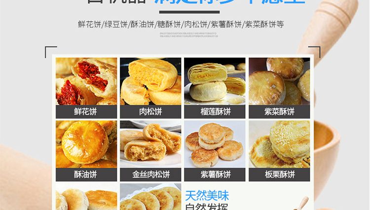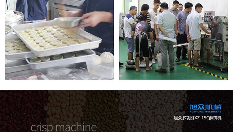 XZ-15C三道搟面酥餅機,仿手工制作面食產(chǎn)品的機型,占地面積小,重量輕,運用搟面杖壓面和打擊面團,以保證高面筋性和面帶的密度,并綜合考慮面食的口感而研發(fā)??缮a(chǎn)東北糖酥餅,東北大香酥餅,蘇式月餅,芝麻餅,鮮花餅,老婆餅。購機免費提供工藝技術(shù)