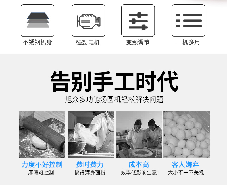 旭眾牌VFD-1200無餡湯圓機(jī)又稱珍珠湯圓機(jī)、桂花湯圓機(jī)。