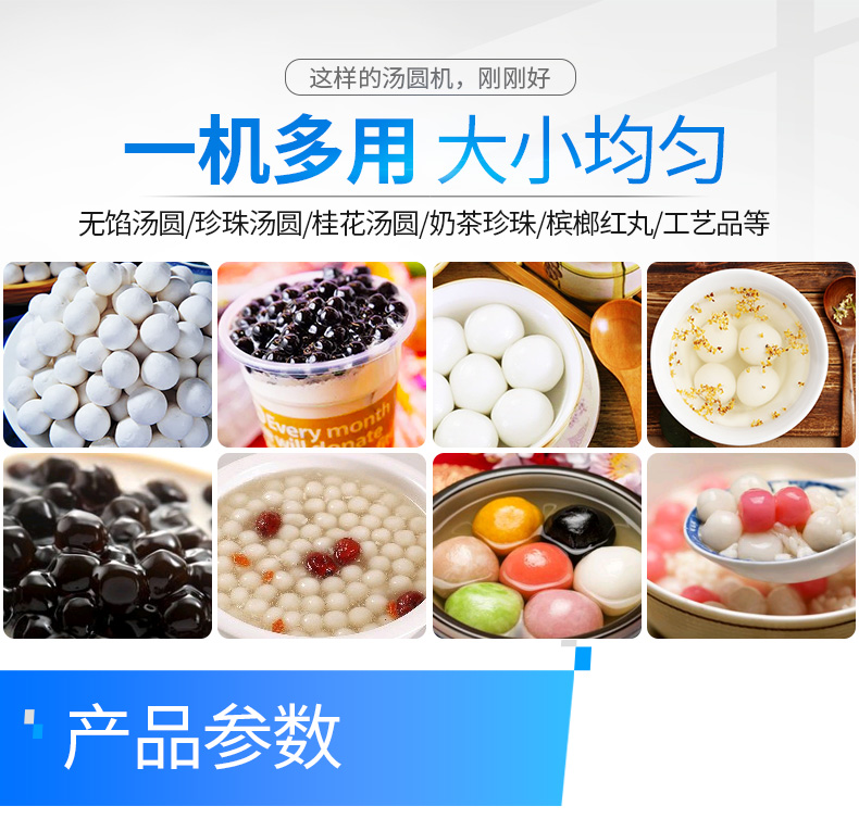 ? 本機(jī)可生產(chǎn):無餡湯圓、珍珠湯圓、桂花湯圓、奶茶所用的珍珠、檳榔紅丸、工藝品等。