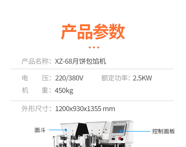 名稱XZ-68月餅自動包餡機 電源220/380V 功率2.5kw 產量 尺寸1200×930×1355mm 重量450kg 規(guī)格 其他