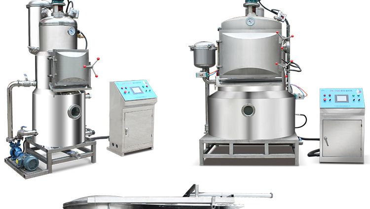 ●雙室采用上下兩個罐,脫油時確保絕對無回油,使含油、含水率更低。油炸、脫油、脫水、油過濾一體化設(shè)計,在真空下連續(xù)性完成,產(chǎn)品含油量低,產(chǎn)品處于負(fù)壓狀態(tài),在這種相對缺氧的條件下進(jìn)行食品加工,可以減輕甚至避免氧化作用(例如脂肪酸敗、酶促褐變和其他氧化變質(zhì)等)所帶來的危害。在負(fù)壓狀態(tài),以油作為傳熱媒介,食品內(nèi)部的水分(自由水和部分結(jié)合水)會急劇蒸發(fā)而噴出,使組織形成疏松多孔的結(jié)構(gòu)。