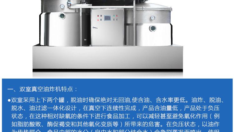 一、雙室真空油炸機(jī)特點(diǎn)