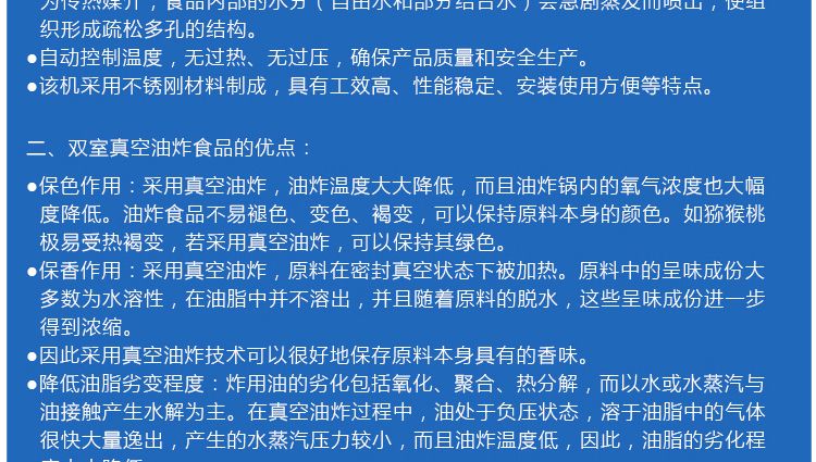 二、雙室真空油炸食品的優(yōu)點(diǎn)
