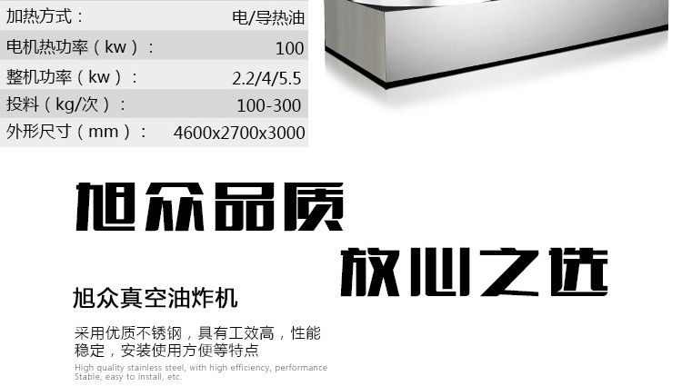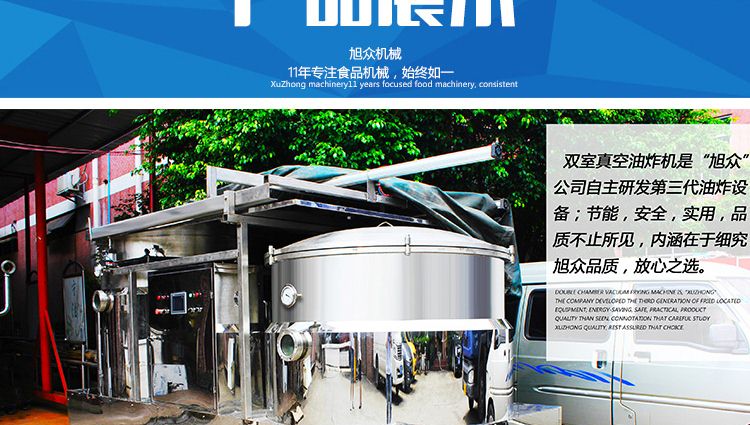 作者:杭州旭眾發(fā)布時間:2017-04-15 11:42查看數(shù):您當(dāng)前的位置:首頁>>產(chǎn)品展示>>油炸機(jī)和榨油機(jī)系列>>真空油炸機(jī)